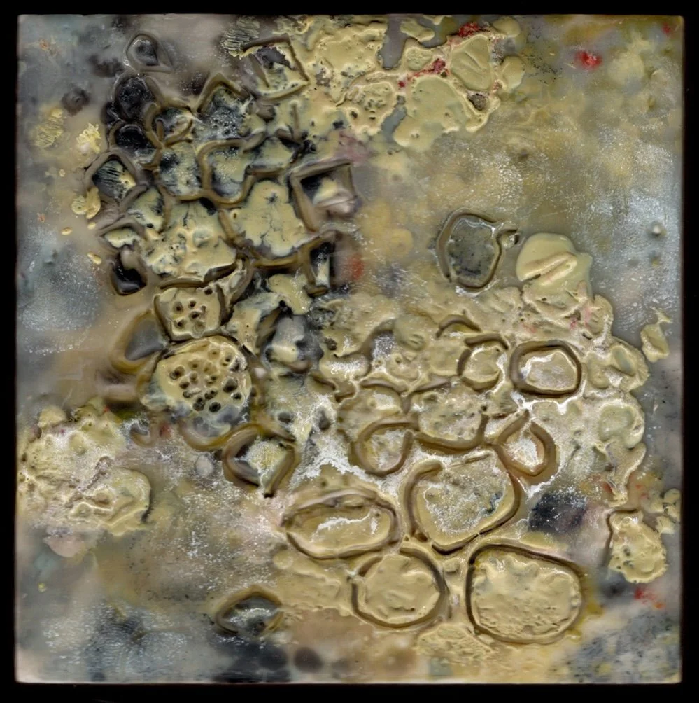Marilyn Banner - “Raval 1”, encaustic on wood, 4x4”, $125